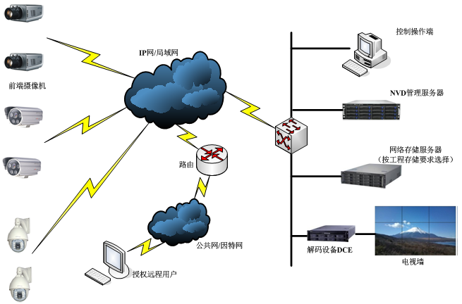 网络化监控:通过IP网络真正做到任何时间、从任何地点、对任何现场进行实时监控;可充分利于IP网络的优势,实现大规模、大范围、全方位监控;