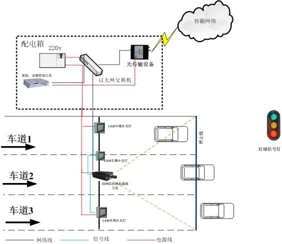 单台高清摄像机可以完整监控2-3个车道,图片质量达到国标要求,在红灯信号状态下,有车辆经过时,系统会快速地检测到车辆变化,并通过对这一变化进行分析处理来判断是否有车辆闯红灯,当检测到车辆有闯红灯违章行为时,会立即抓拍反映该车辆违法信息的三张高清图片并对图片进行关联保存。三幅全景图片,清晰记录车辆未越过停止线、已经越过停止线并且在相应红灯相位继续行驶的情况,清楚反映整个闯红灯过程。