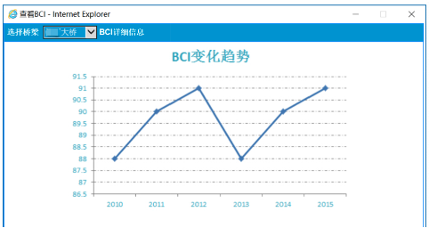 系统具有提供桥梁信息档案,查看每个桥梁的全部信息的功能。提供的信息包括桥梁的静态信息和桥梁的动态信息。