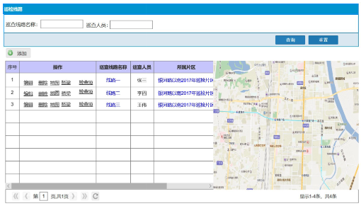 提供结合地图对巡检区域、巡检路线进行定位查看。