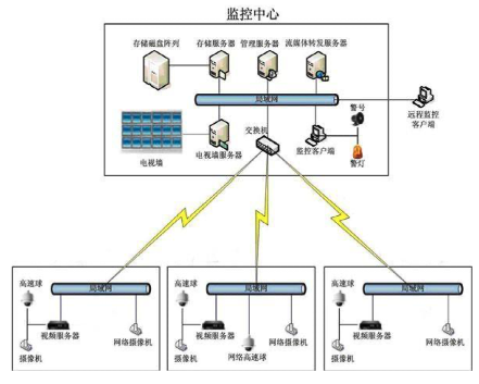 视频监控子系统可以直接对现场的情况进行监视,是安防系统的基础,由以下几个部分:前端部分、主控部分、存储部分和显示部分组成。