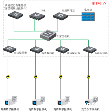 高清视频监控系统建设监控点图像全部接入视频监控专网,由分控中心进行24小时实时监控,并保证在突发事件发生时,监控中心能够调用现场实时图像信息进行指挥和调度。系统建设的思路如下: