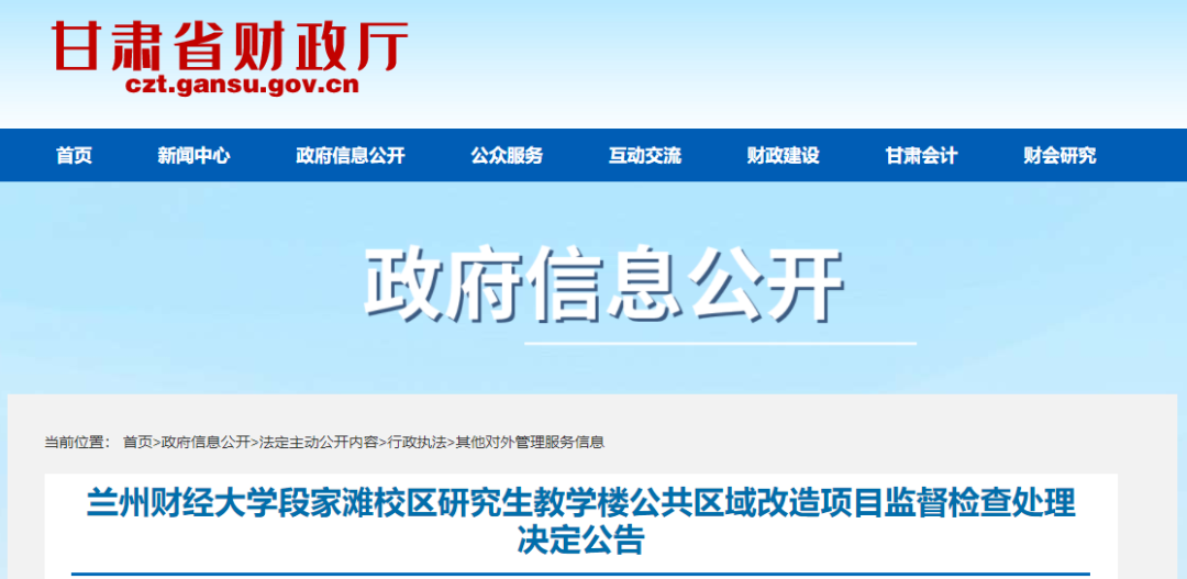 我机关依法对2022年6月22日收到的对“兰州财经大学段家滩校区研究生教学楼公共区域改造项目”采购文件的举报进行了监督检查。