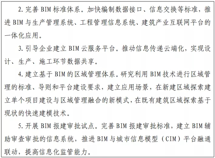 加快推进建筑信息模型(BIM)技术在工程全寿命期的集成应用, 健全数据交互和安全标准,强化设计、生产、施工各环节数字化协同,推动工程建设全过程数字化成果交付和应用。